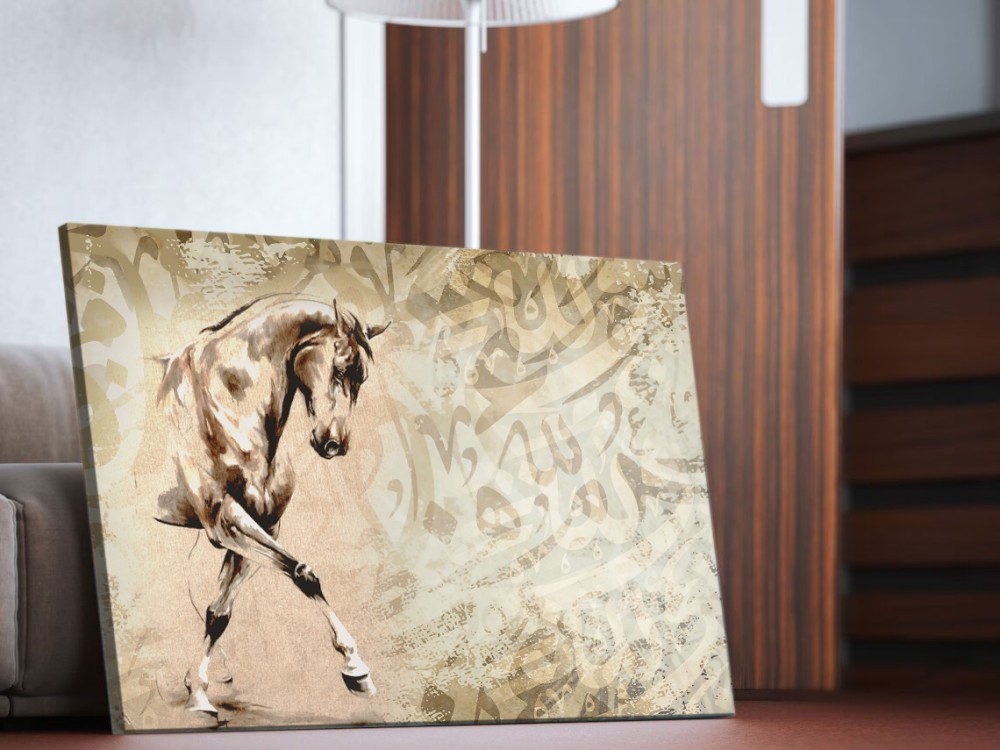 لوحة الخيل والخط العربي، تحفتين فنيتين تتلاشيان في تجانس مدهش. لنقم بركوب الموجة الفنية ونغوص في هذا العالم الجميل.