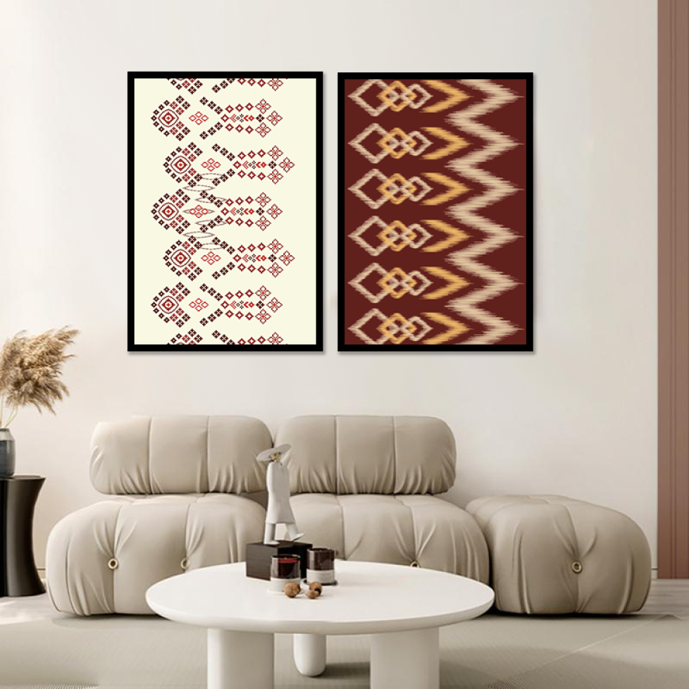 لو ودك ترفع من جمالية المكان بطريقة بسيطة وأنيقة، لوحات ثنائية بزخارف عريقه هي خيار مثالي. مطبوعه على قماش كانفس فاخر وتجمع بين الأصالة والجمال. قطعة ديكور تستاهل تكون جزء من بيتك وتزين جدرانه سنين طويلة.
