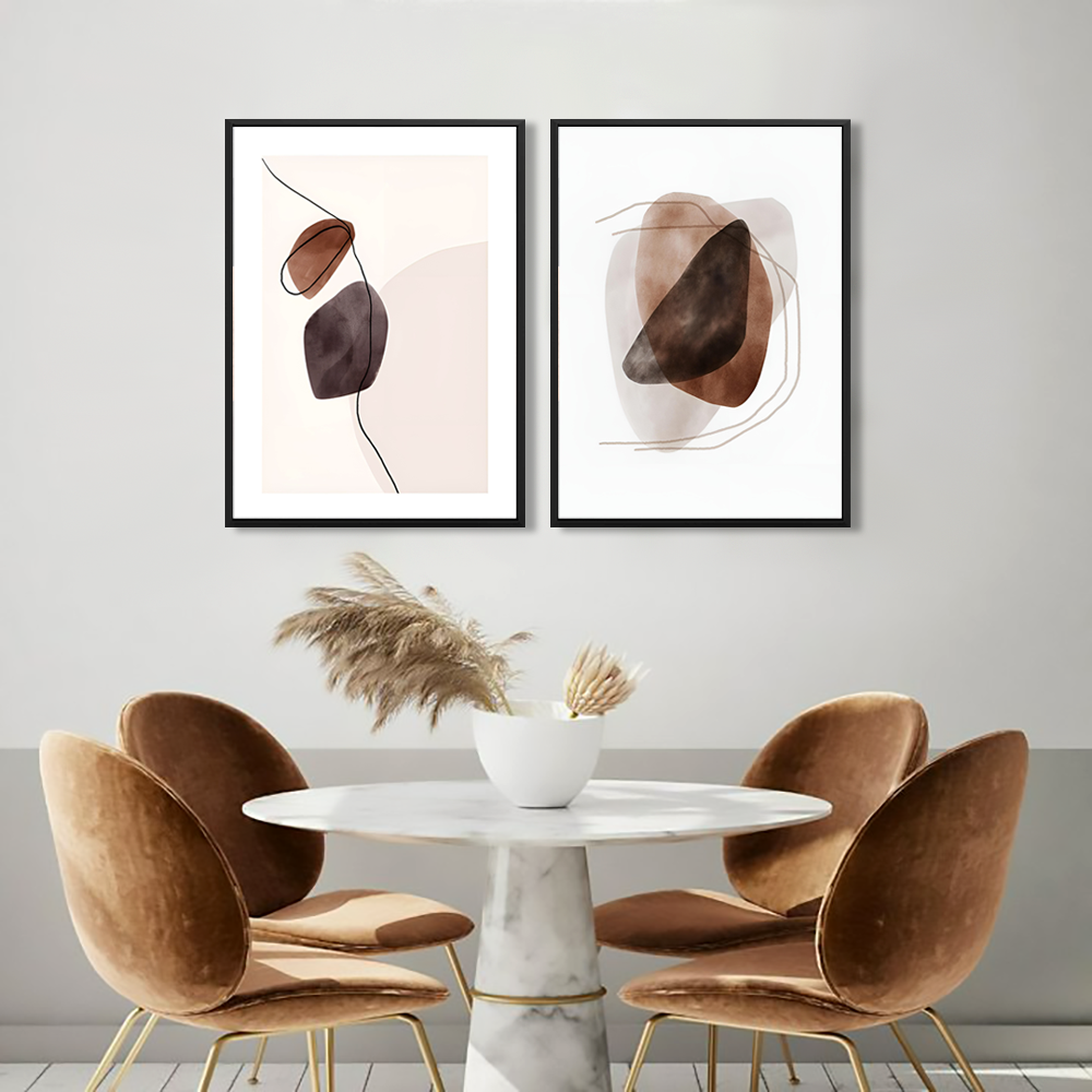 أول شي، تضيف العمق والأناقة لأي غرفة. تخيل معي غرفة بسيطة، وبعد إضافة لوحتين متناغمتين على الحائط، فجأة يصير المكان مختلف كليًا. هذي اللوحات تعطينا فرصة نلعب بالألوان والأشكال ونخلق تناغم بصري جميل.