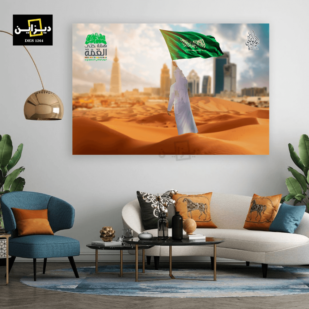 انت كمواطن سعودي، أكيد تحس بالفخر لما تشوف لوحة مثل هذه. تذكرك دايم إنك تنتمي لوطن عظيم، وإنه مهما كانت الظروف، وطنك دائماً أول وأكبر همّك. اللوحة تذكرك بأهمية رفع اسم المملكة دائماً وأبداً.